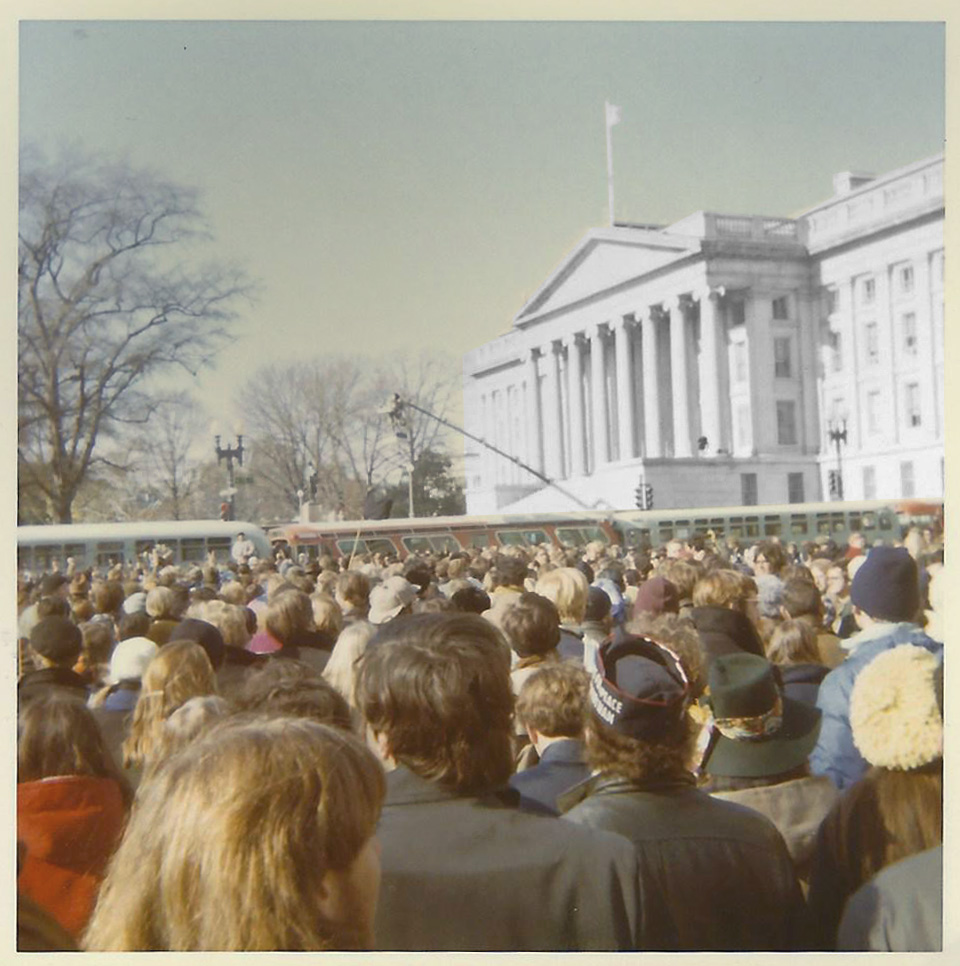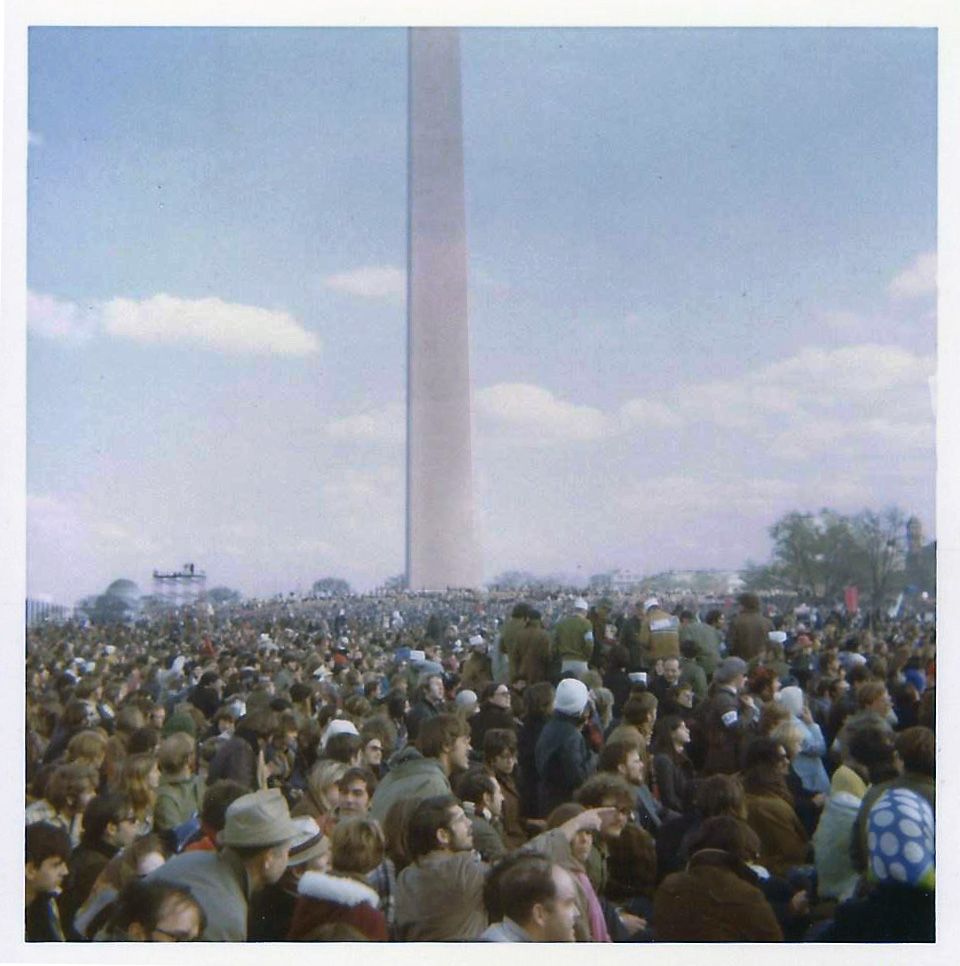 We arrived in our nation’s capital just in time for Friday night’s (October 14th) “March Against Death”. A somber affair indeed. Thousands of us walked in a single line down Pennsylvania Avenue carrying a placard with the name of an American soldier killed in Viet Nam, from the state in which we both resided. The other hand held a candle. Silence was broken at the gates of the White House to shout out his name. Nixon was inside at the time and later that night famously visited with protesters sleeping inside the Lincoln Memorial. The placards were placed in coffins at the US Capitol, then delivered to the White House the next day during the main march. Ultimately, the name of the soldier on the placard I carried would join those of over 58,000 other fallen soldiers engraved on the walls of the Viet Nam War Memorial dedicated in 1982. I am sorry to say I do not remember the name of that one soldier.