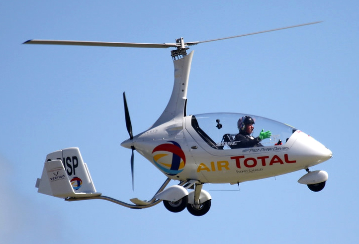 *An autogyro , “self-turning”), gyroplane or gyrocopter, is a class of rotorcraft that uses an unpowered rotor in free autorotation to develop lift. It’s rotors are not engine-driven, except for initial starting, but are made to rotate by action of the air when the rotorcraft is moving. While similar to a helicopter rotor in appearance, the autogyro’s unpowered rotor disc must have air flowing upward across it to make it rotate. Forward thrust is provided independently, by an engine-driven propeller. THIS WORKS? THIS IS LEGAL?